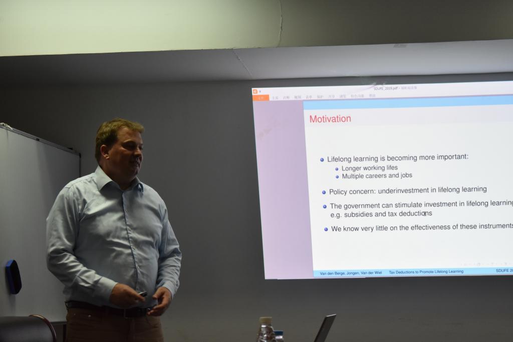 6月28日下午,山东财经大学课程(财政学)国际化项目学术讲座在办公楼816举行。荷兰莱顿大学的Egbert Jongen和Max van Lent两位教授分别做了题为 “Using Tax Deductions to Promote Lifelong Learning: Real and Shifting Responses”和“A Social Norm Nudge to Save More: A Field Experiment at a Retail Bank”的学术报告。研讨会由中文博彩网站