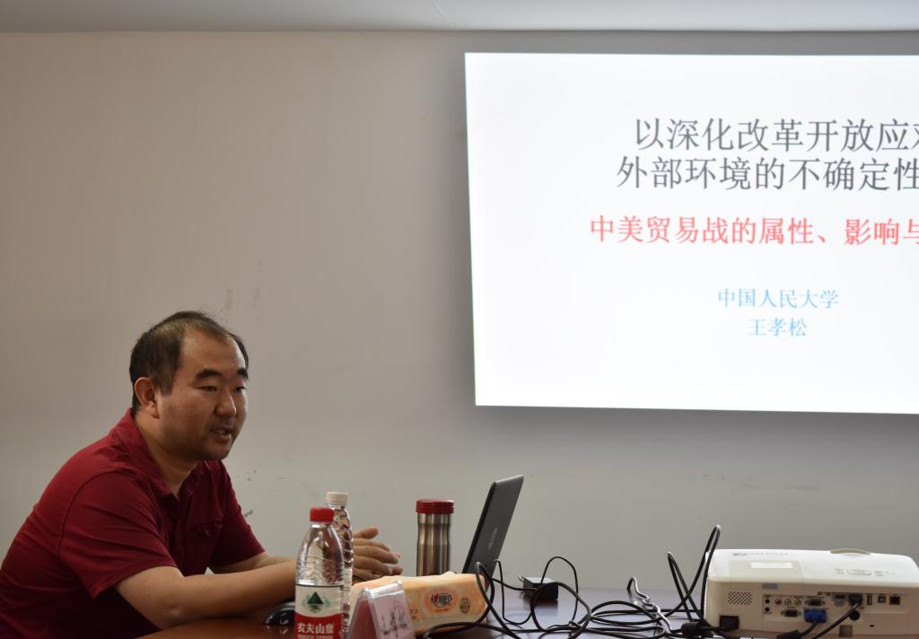 第26期财税学术论坛在办公楼816举行。本期论坛邀请了中国人民大学王孝松教授做了题为《以深化改革开放应对外部环境的不确定性——中美贸易战的属性、影响与对策》的学术报告。研讨会由中文博彩网站