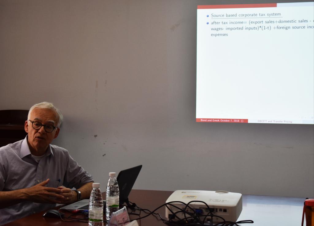 第23期财税学术论坛在办公楼816举行。本期论坛邀请了美国范德堡大学经济系Eric Bond教授做了题为《Unilateral Tax Reform: Border Adjusted Taxes, Cash Flow Taxes, and Transfer Pricing》的学术报告。研讨会由中文博彩网站