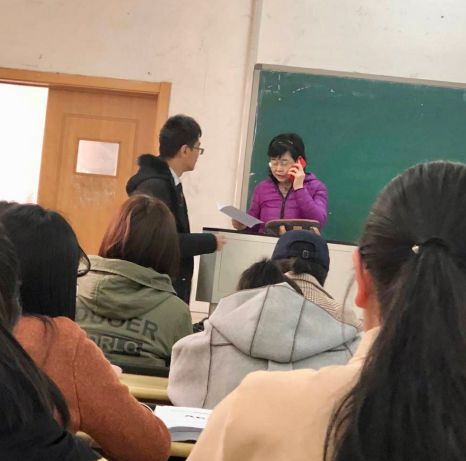 学生在课前为老师添加热水、说明班级情况,送上暖心服务。