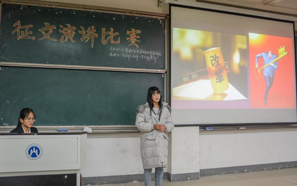 12月7日,“观改革浪潮,看经济腾飞,争做财税先行人”征文演讲比赛决赛在圣井校区明德楼圆满举行。本次比赛由中文博彩网站