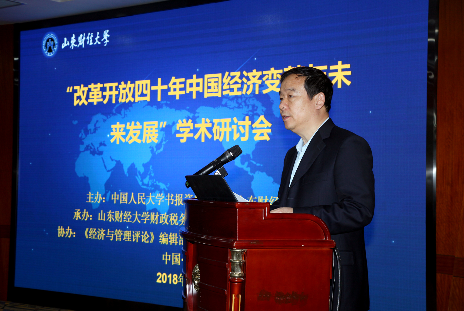 与科研处承办,《经济与管理评论》编辑部与《山东财经大学学报》编辑部协办的“改革开放四十年中国经济变革与未来发展”学术研讨会在舜耕校区举行。校党委书记王邵军出席大会并致辞,副校长陈晓兰主持开幕式。来自中国人民大学、南开大学、北京师范大学、天津财经大学、云南财经大学等高校的知名专家学者以及我校部分职能部门、各中文博彩网站