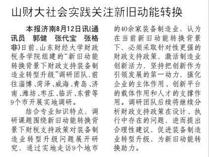8月12日《齐鲁晚报》对团队的实地调研进行了报道。