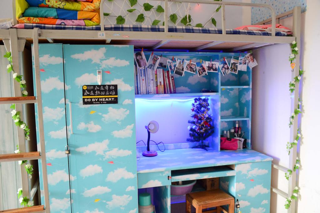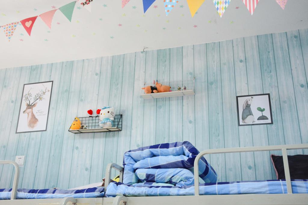 在本次宿舍文化节活动中,涌现出许多优秀宿舍。书籍摆放整齐,门窗洁净无尘,墙上贴着各种独具特色的墙纸,宿舍面貌焕然一新。墙纸不仅有可爱的少女粉、动感的活力蓝,还有充满现代感的简约风、时尚派。有的宿舍挂着清新雅致的饰品,有的在墙纸上手绘简笔画,创意满满个性十足。同学们的宿舍装饰充满美感与活力,洋溢着积极向上的气氛,构思新颖,体现着新时代大学生的创新精神。