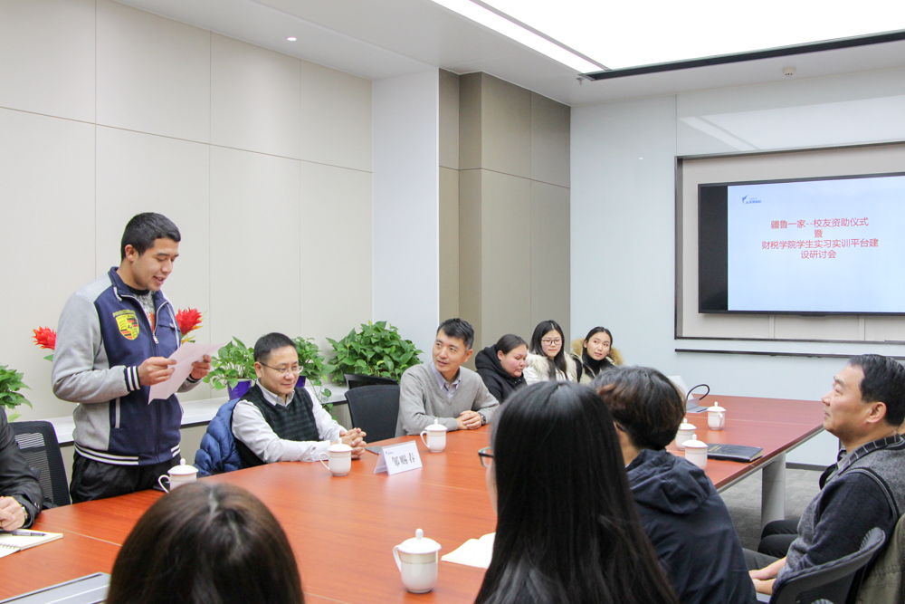 此次捐献仪式暨研讨会弘扬了民族团结、疆鲁一家的精神,让同学们意识到各民族休戚与共、相互依存的重要性。基金业的蓬勃发展和行业内涵的知识,让同学们具体地了解到基金公司的流程,近距离接触到基金公司的运作,拓宽了财税学子的视野,获得了宝贵的实践知识。我们相信,受资助学生一定会心怀感激,圆满完成学业;相信财税学子定会锐意进取,强化理论与实践的结合,站在新时代的起点,以新的理念完善自我,以崭新的面貌投入到新时代的建设征程中。(通讯员:于鑫 李敏拍摄:王冰寒)