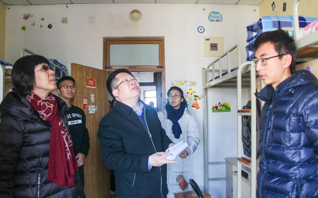 领导老师们首先来到了男生一号公寓楼。在抽查的过程中,老师亲切问候了同学们的宿舍日常生活,并详细了解了宿舍供暖状况、水电使用情况、公共物品防护和饮食健康等问题。温情的话语回荡在学生寝室,师生交流气氛轻松融洽。同时,老师们也细心地指出,学生在内务整理方面存在着一些问题:宿舍内物品归置不到位、通风不足出现异味、使用不安全座椅等等。梅书记特别强调,如果发现卫生间出现垃圾堆积、鼠患等情况,同学们要第一时间上报给学校宿管科。学校会尽快解决这些问题,以确保同学们拥有良好的宿舍生活环境。