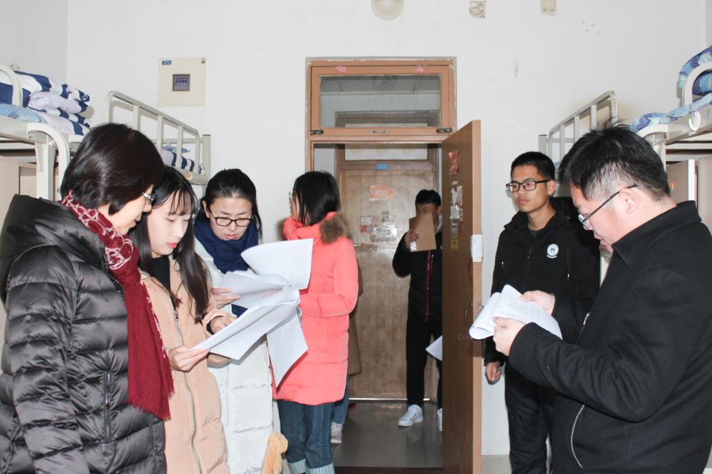 党委副书记梅丽萍、2017级财政学辅导员郭滨滨老师、2017级税收学辅导员李建永老师、2016级税收学辅导员李子云老师抽查了本院一二年级学生宿舍。中文博彩网站