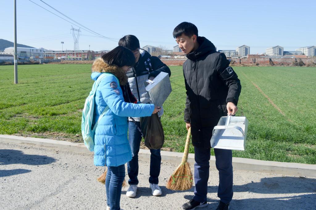 上午,同学们携带卫生工具于章丘区张家村村口集合,大家分工明确,沿村内街道捡拾散落在各处的垃圾。活动当天气温较低,但这丝毫没有降低同学们劳动的热情,大家把垃圾清扫干净,并对其统一收集处理。
