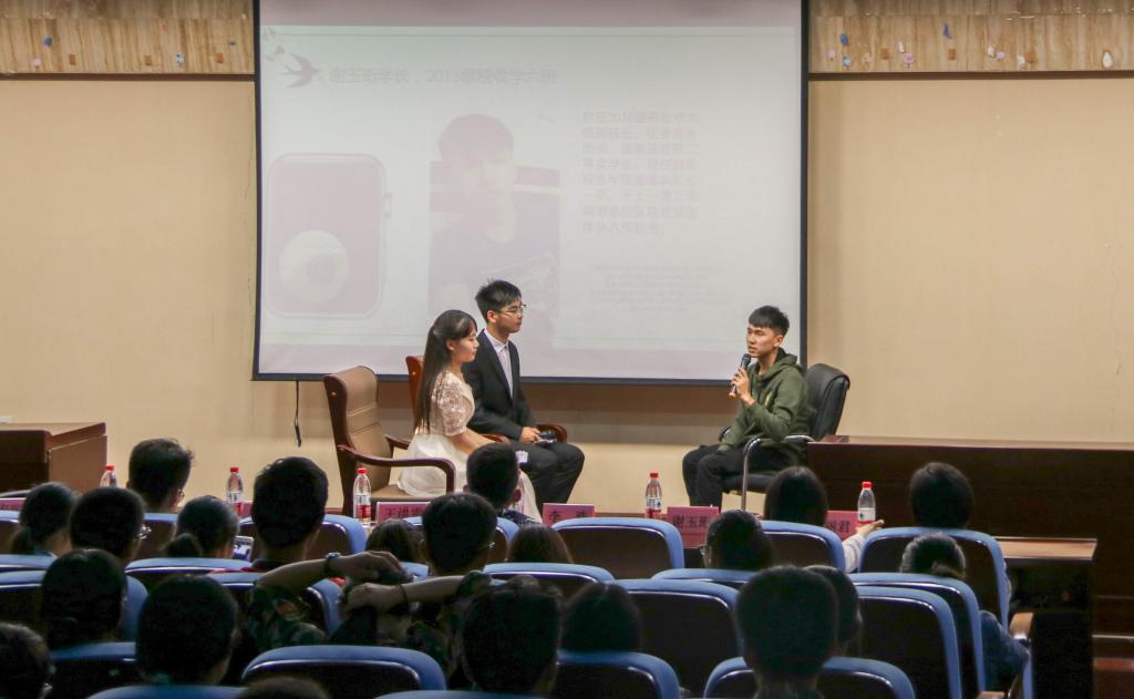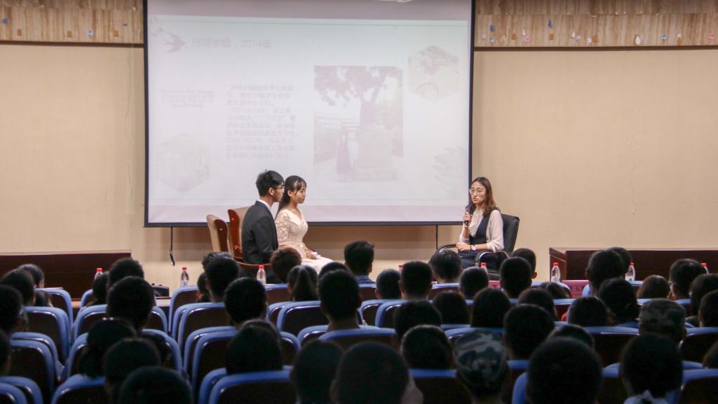 交流会以各位主讲人的专题视频拉开序幕。视频通过主讲人的自我介绍和妙趣横生的友人评价,激起了新生对大学丰富多彩生活的期待和畅想。紧接着,主讲人依次上台,亲切热情地与新生分享日常学习、社会实践的经验感悟。