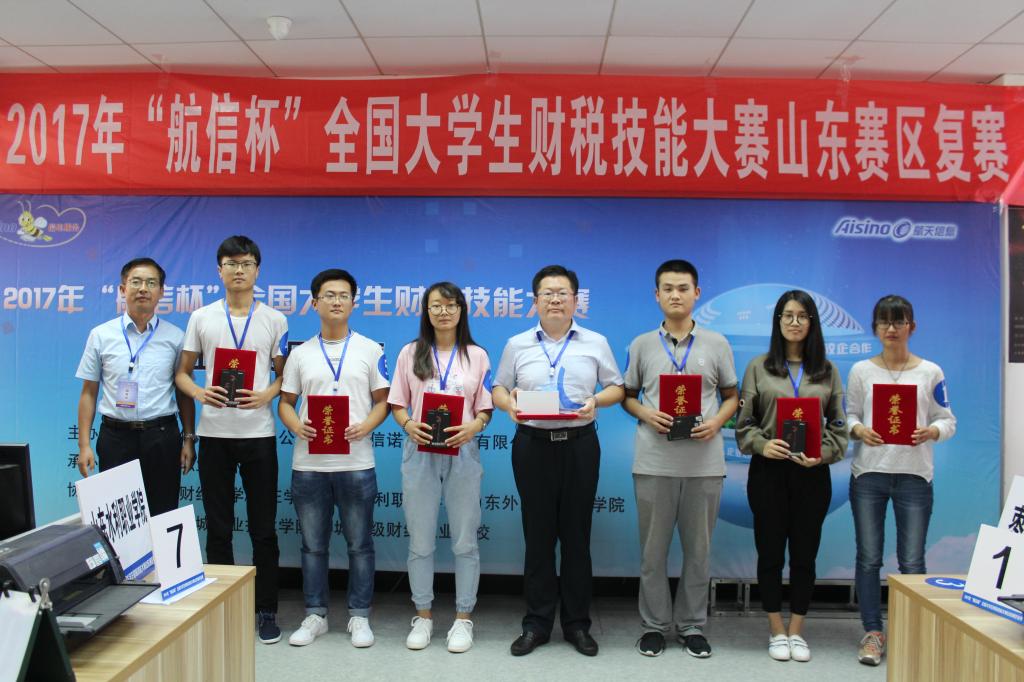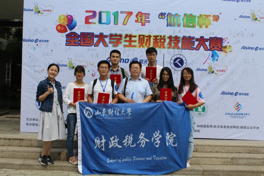 2015级财政学七班丁文文、税收学三班程露、税收学三班祝秋思、税收学四班张同兆、税收学四班赵晓琴、税收学五班宋晖六位同学组成的山东财经大学代表队在指导老师李建永的带领下前往日照参加2017年“航信杯”财税技能大赛山东赛区复赛,中文博彩网站