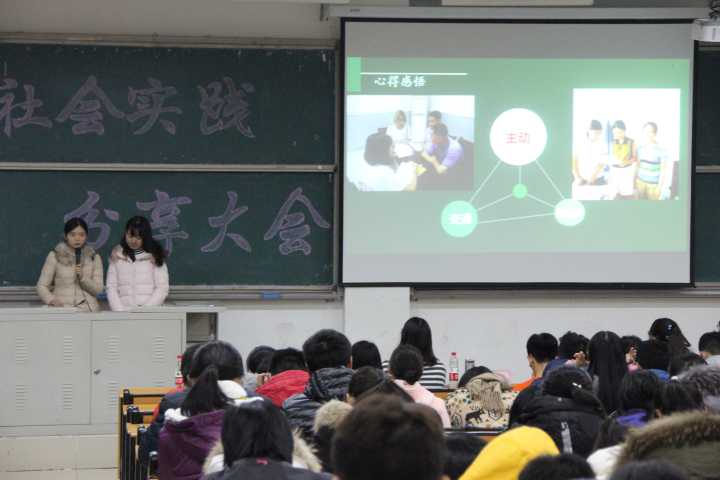 社会实践分享大会于圣井校区明德楼圆满举行。本次社会实践分享大会由学生会创新实践中心社会实践部举办。2014级、2015级部分优秀社会实践调研团队队长及成员出席本次分享会,2016级部分同学参加此次大会。