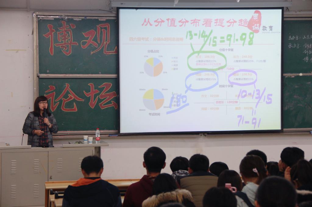 第十六期博观论坛“2016四级英语高分策略”专题讲座于圣井校区圆满举行。本次博观论坛由中文博彩网站