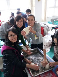 经过一个小时的拼搏,同学们身上沾满了面粉,但水饺盘里却添满了各式各样的水饺。老师与学生们看着这“可爱”的水饺,脸上洋溢出满意的笑容。包水饺的过程对于大多数学生来说可能得需要花费一番周折,但从他们脸上看到的却只有欢乐与满足。水饺出锅后,大家满意地吃着自己亲手包的水饺,整个餐厅弥漫着家的气息。