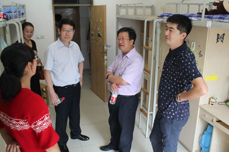 领导老师在迎新工作人员的带领下来到大一新生宿舍,关心新生的住宿情况。领导老师热情地与新生和新生家长交流,询问他们的意见,关切他们的报到情况,耐心细致地回答了家长们提出的问题。李书记向新生强调大学学习的重要性,希望新生在专业学习的基础上积极拓展视野,全面提高综合素质能力,学到更多的本领。汤副书记嘱咐新生要相亲相爱,和睦共处。2015级两位新生辅导员帮助新生整理床铺,详细解答他们的疑问。