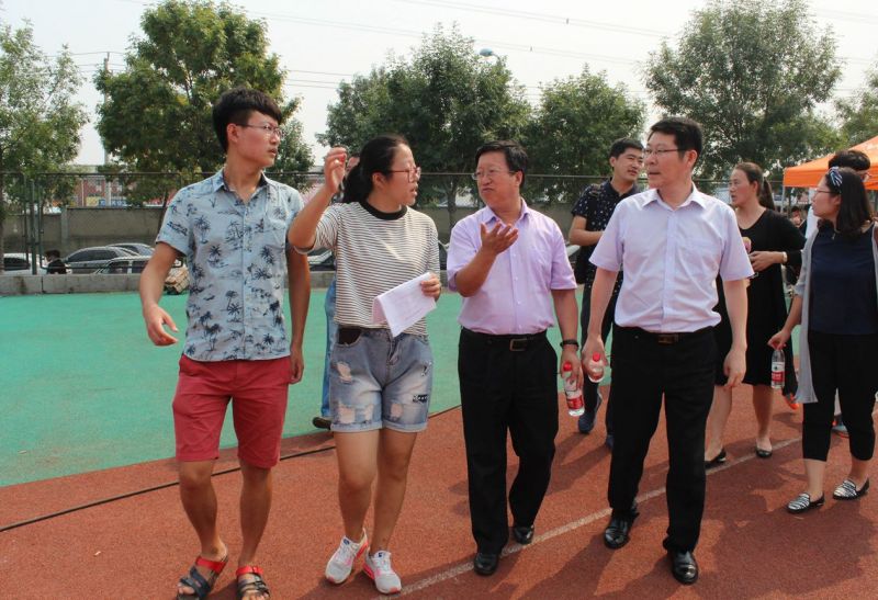 院长岳军,党委书记李玉成,党委副书记汤长胜,2014级辅导员王正一、李峻汝,2015级新生辅导员马静、程佳来到迎新现场检查指导迎新工作,看望迎新的工作人员。他们与迎新的工作人员亲切交谈,耐心询问相关事宜,了解迎新工作情况,提出指导意见。岳院长认真阅读迎新展板,强调迎新工作的重要性,赞扬了工作人员的出色工作,鼓舞他们再接再厉。2015级新生辅导员向新生带班了解新生的报到情况,补充自己的工作计划。