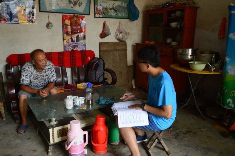 8月15日,团队成员在代家店村和西胡营村采访村干部,进行入户调查,进一步加深了对农村情况的了解。团队成员在指导教师的带领下与村民亲切交谈,通过聊天访谈形式进行调查。我们的调查问卷的随机抽样发放、问答对于小队员们来说是一种挑战和锻炼。从一开始的被村民们质疑到在村头亲切地帮着村民一边做些小农活一边交流;从只会照着问卷设计的问题生硬地询问到越来越熟练地与被访者交流攀谈来发掘问卷背后更深处的信息。问卷带给我们队员的不仅是一组组真实而又宝贵的数据与资料,更是一种人生的历练。在数据采集结束后,两位老师也是满怀欣慰地看着短短两天就迅速成长了的同学们。