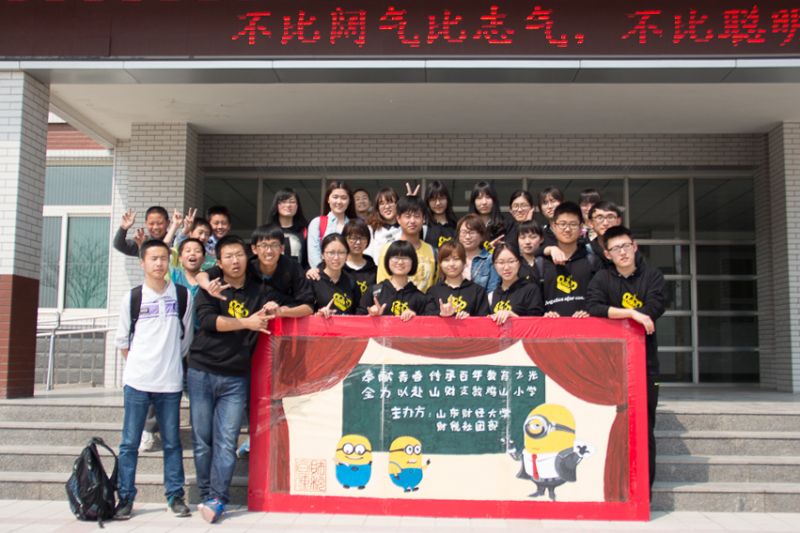 历年来的品牌活动。活动秉承 “奉献、友爱、互助、进步”的理念,以“培养大学生的奉献精神和服务意识”为宗旨。此次活动的主题是“财税精英志愿者支教鸡山村小学”。