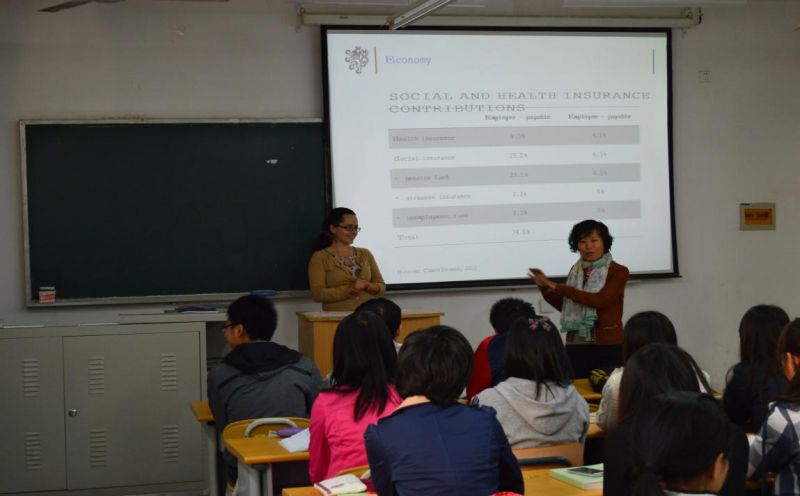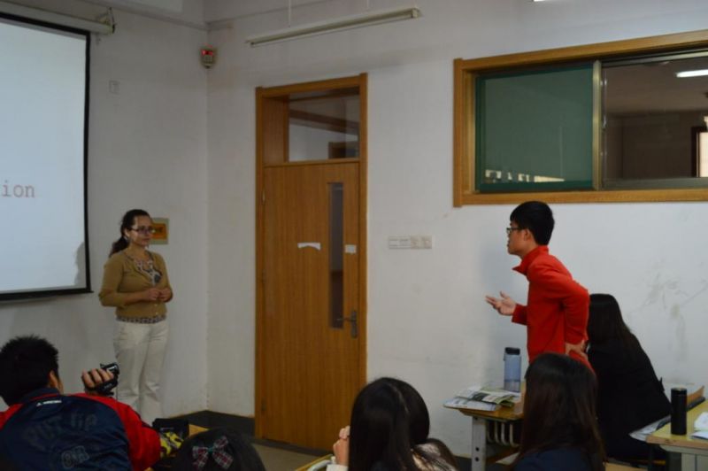 Zuzana博士首先介绍了捷克的基本概况,随后运用大量的图表和数据分析了捷克当前的经济发展状况及其面临的挑战,并着重分析了捷克加入欧盟、欧债危机爆发等重大事件对本国社会经济所产生的重要影响以及政府的应对策略。课后Zuzana博士还跟教师和学生们进行了积极地交流和互动,就有关捷克的大学教育、养老保险政策、老龄化社会以及中国与捷克之间经贸关系等问题进行了讨论,气氛活跃而热烈。