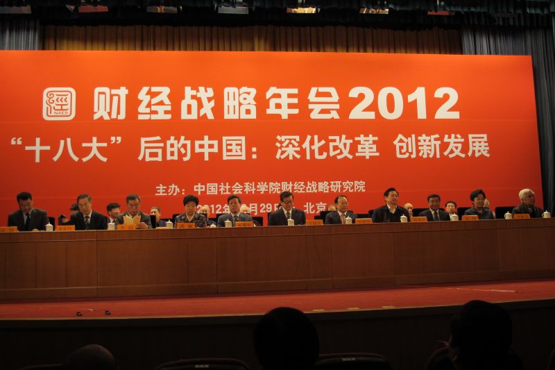 财经战略研究院主办的财经战略年会2012在中国社科院社科会堂开幕。本次会议是中国社科院举行的首届财经战略年会。