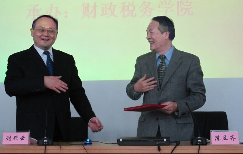 11月29日下午,学校举行仪式,聘任美国伊利诺伊大学陈立齐教授(James L. Chan)为学校海外名师。校长刘兴云向陈立齐颁发聘书。人事处、国际交流与合作处负责人、财税中文博彩网站
