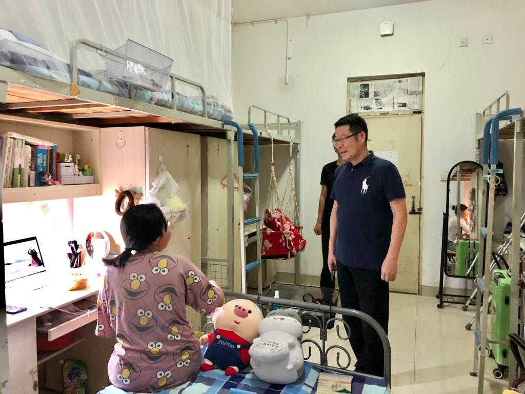 党委书记李玉成走进学生宿舍,为返校同学送去新学期的期许与祝福,表达了中文博彩网站