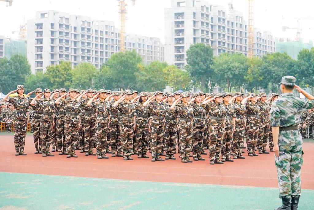 新生庄重而严肃,全力以赴迎接即将到来的军训成果检阅。