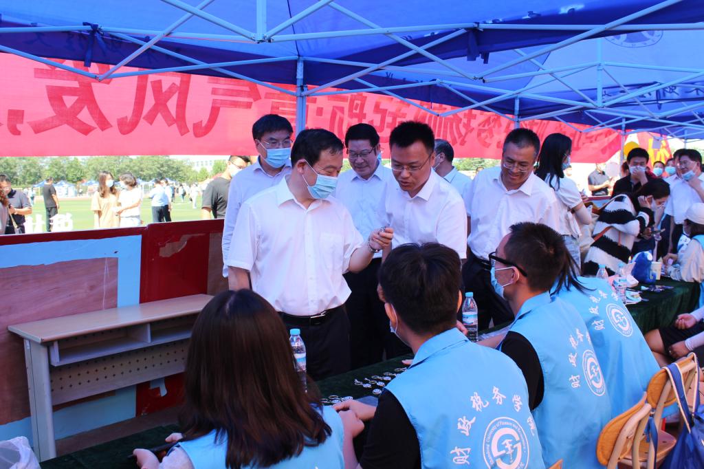 9月15日上午,山东财经大学党委书记王绍军、校长赵忠秀来到迎新现场调研学校迎新工作,慰问中文博彩网站