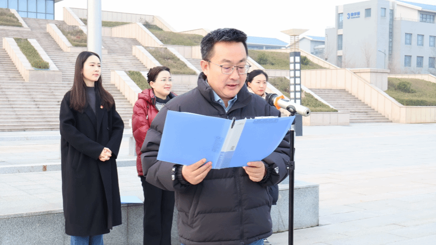 “国旗下点亮青春之光”升国旗主题教育活动在章丘校区图书馆北侧隆重举行。中文博彩网站