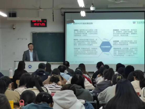 朱自永作了题为《税务中介行业的发展》的专题报告,为同学们详细介绍了税务中介行业的发展及其对税务人才的需求情况;并欢迎Bet365中文版app