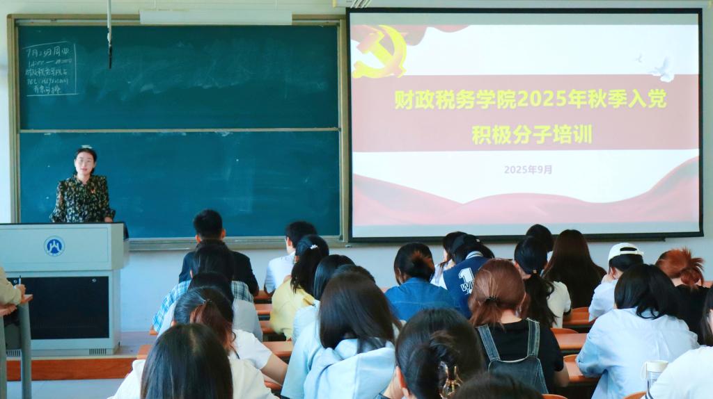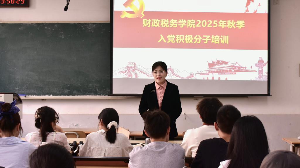 党委副书记滕晖和辅导员李昕鑫主讲,2025年秋季入党积极分子参加。