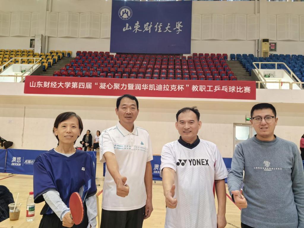 11月1-2日,山东财经大学第四届“凝心聚力暨润华凯迪拉克杯”教职工乒乓球比赛在舜耕校区体育馆举行。学校党委副书记谢申祥、工会主席邱博等出席。
