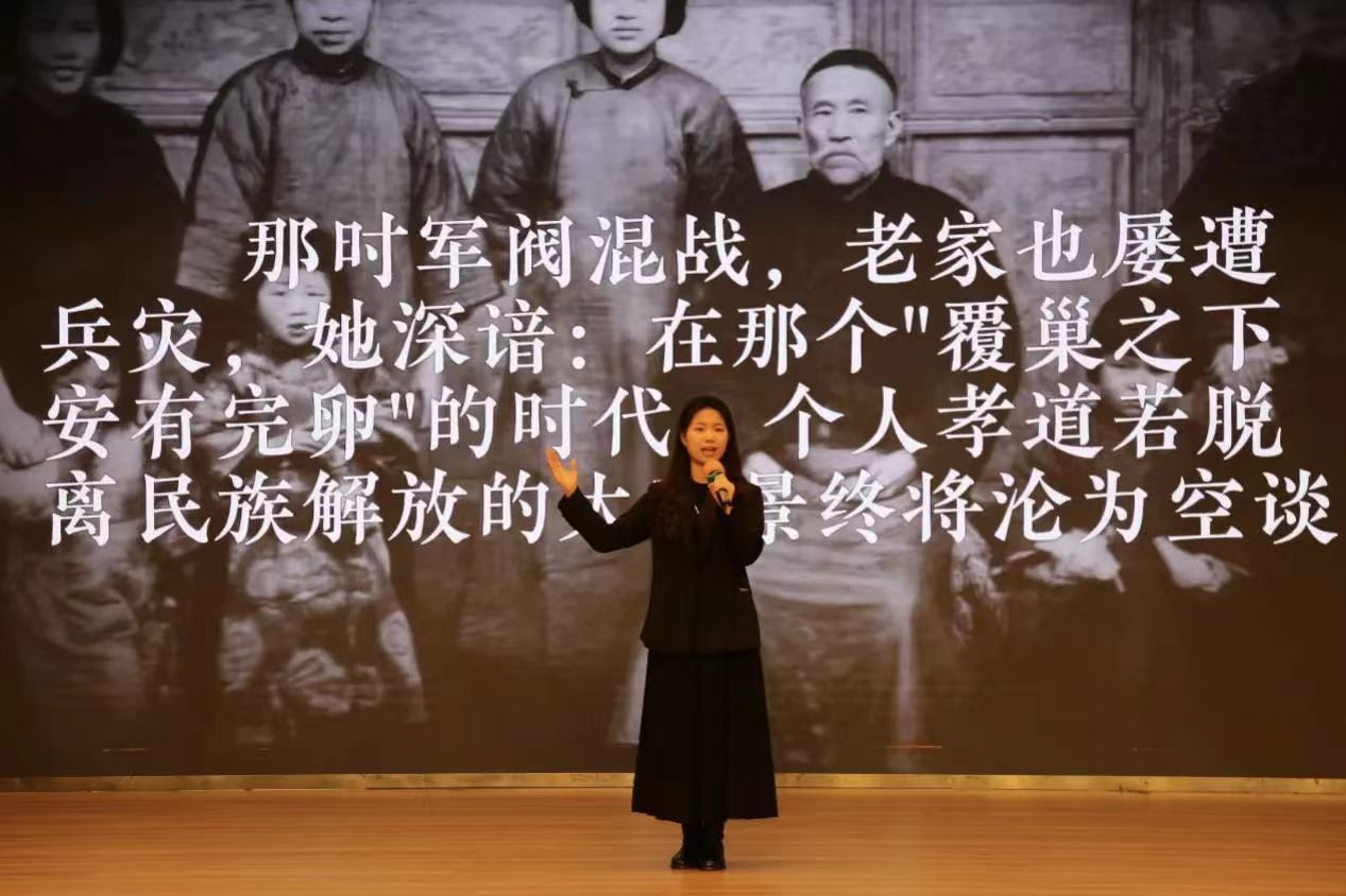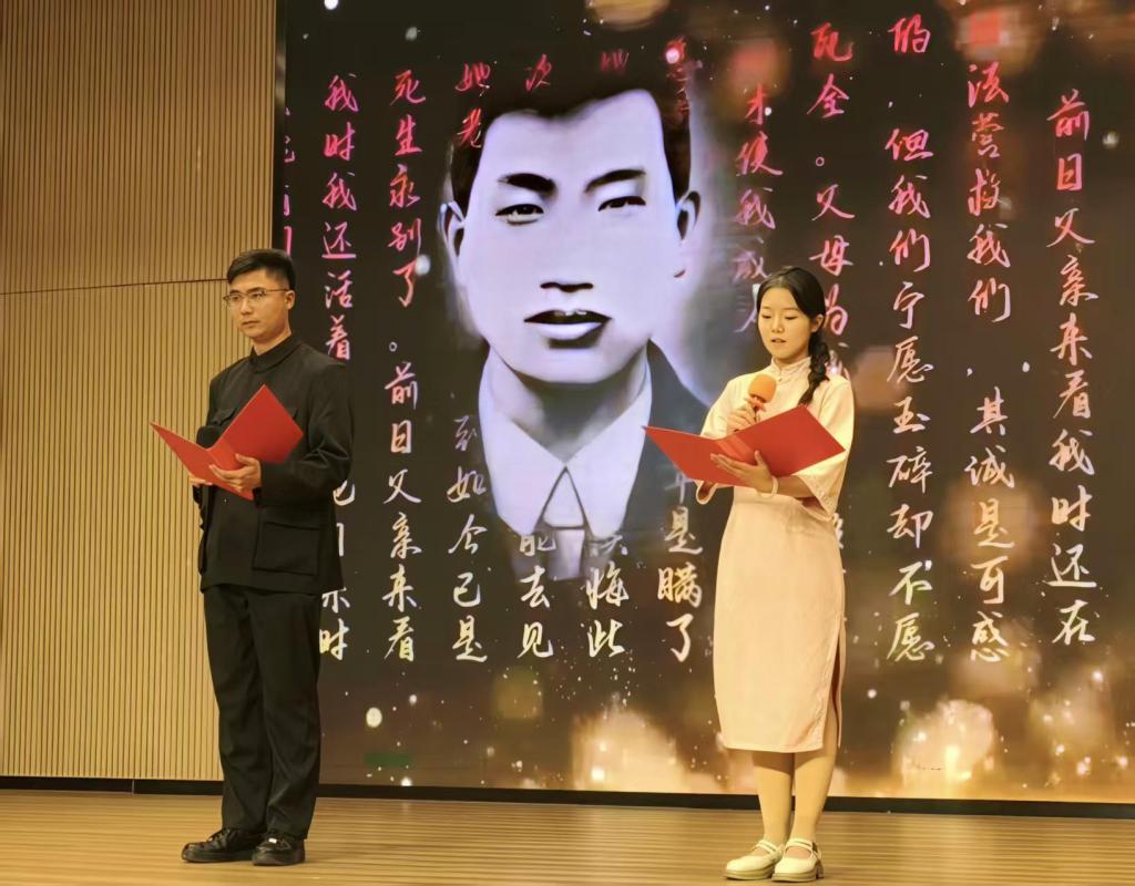 24级殷金墀同学深情诵读向警予家书,将革命先辈“造真学问储真能力,为国家为双亲为兄弟为自身”的坚定选择娓娓道来,字句之间尽显理想之光与责任之重;25级董朴甲、白浩达、张瑾三位同学演绎陈觉、赵云霄这对革命伴侣的绝笔家书,将“我们正是为了救助全中国人民的父母和妻儿,所以牺牲了自己的一切”的崇高精神进行生动诠释。