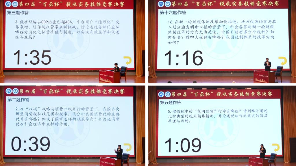比赛现场紧张激烈,精彩纷呈。上半场抢答环节,选手们思维敏捷、应对如流;下半场案例分析环节,各选手紧扣税收实务,精准剖析、策略清晰,展现出扎实的专业功底与良好的逻辑分析能力。活动中,宣讲团宣讲《财聚国脉·税润初心》与舞台剧《课堂一梦入税史》穿插上演,以艺术形式诠释财税人的使命担当与税制演进历程,为大赛增添了浓厚的文化氛围。