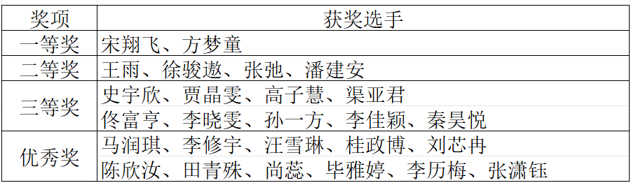 据悉,本次比赛共设四个奖项,一等奖2人,二等奖4人,三等奖9人,优秀奖11人。在热烈的掌声中,滕晖书记、程佳老师、李子云老师分别给获奖选手颁发了荣誉证书和奖品。