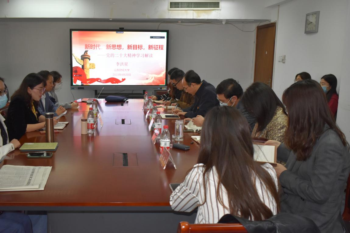 党委书记刘波,院长李森,党委副书记滕晖,副院长郭健,全院师生共同聆听了此次辅导报告。报告会由滕晖主持。本次辅导报告采用线上线下相结合的方式,舜耕校区816会议室为主会场,圣井校区7313会议室为分会场,其他师生通过腾讯会议收听收看。