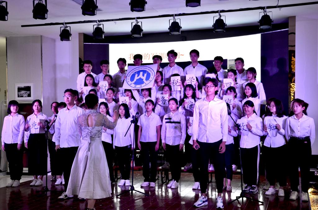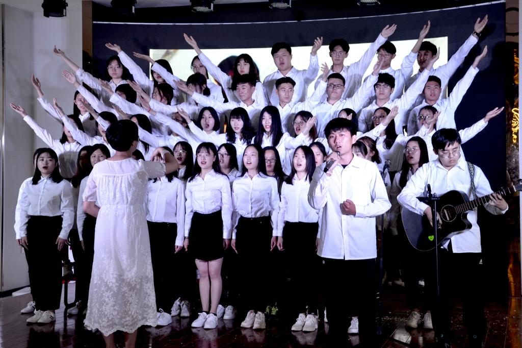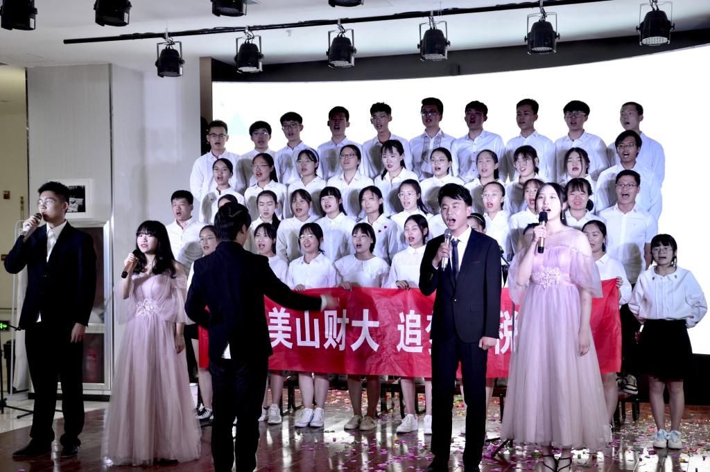 最后,由财政学一班为大家演唱了《点亮未来》。他们的歌声空灵优美、和声婉转动听、感情饱满丰富,铿锵有力的指挥也十分地引人注目。