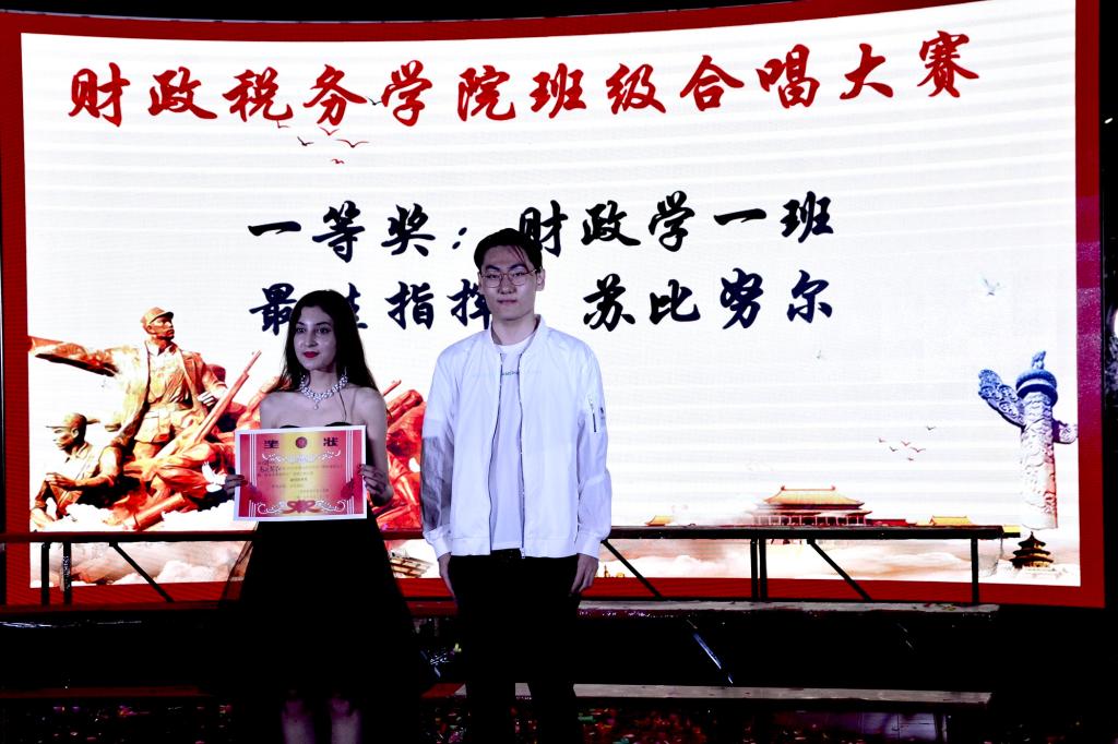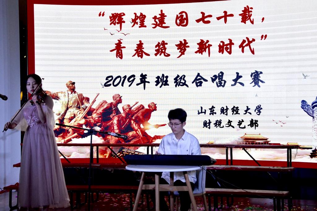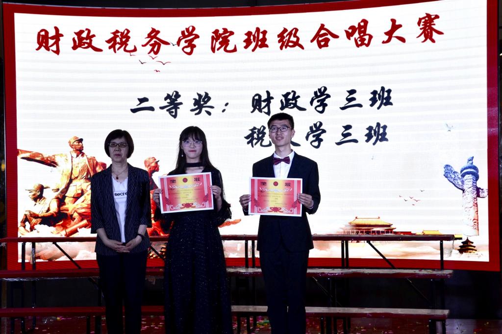 紧接着,由财政学三班的同学献上歌曲《我和我的祖国》。简洁明快的曲调和朗朗上口的旋律,将中华人民共和国诞生的壮丽画卷勾画得淋漓尽致。
