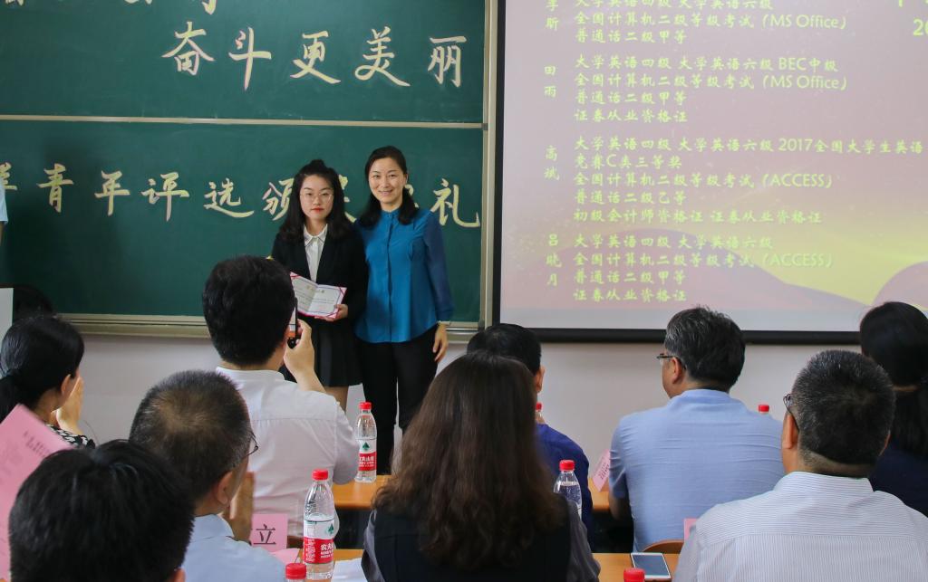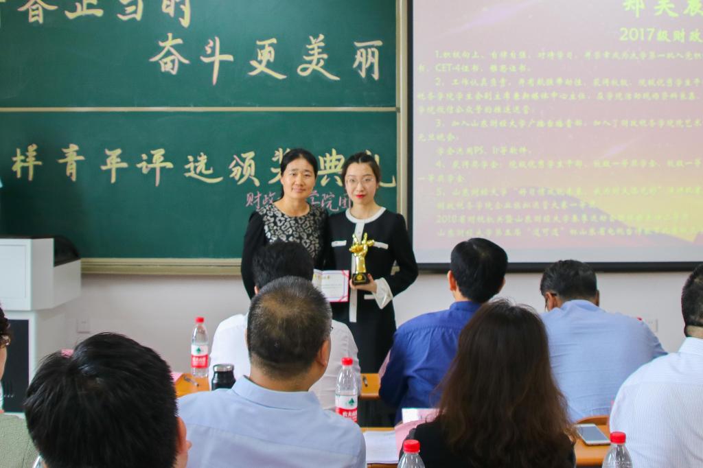第九个颁发的是“宣传活动榜样青年”奖项,获奖者是2017级财政学六班的郑昊晨。坚持原创,坚持新闻第一线是她的原则,为中文博彩网站
