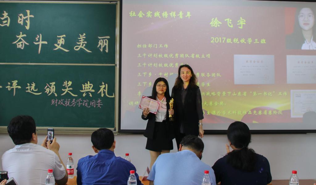 随后,2017级税收学三班的徐飞宇获得了“社会实践榜样青年”奖项。“纸上得来终觉浅,绝知此事要躬行。”她主动参加社会实践活动,用积极的态度参与社会、融入社会、服务社会,使得自身能力有了巨大提高。