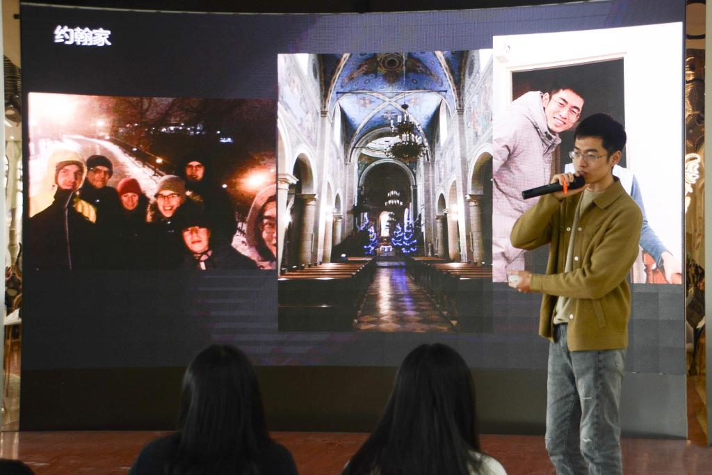 接着,在波兰罗兹大学留学的徐睿、刘泽法上台发言。徐睿借自身经历,讲述了国外和国内生活的不同。波兰的老师们不仅传授专业知识,还教给同学们为人处世的方法、在国外生存的技能。同时,徐睿认为国外学习强度大、更强调自主性,同学们要学会自律。刘泽法从在异地的感受、波兰生活和旅行生活三个方面介绍了他的留学生活。他用一张张迷人的风景照向同学们展示了他在华沙生活的点点滴滴,分享了他在捷克、奥地利、法国、希腊等地旅行的经历。同学们了解了异国的文化魅力和罗兹大学的课堂活力,对留学生活充满了期待。