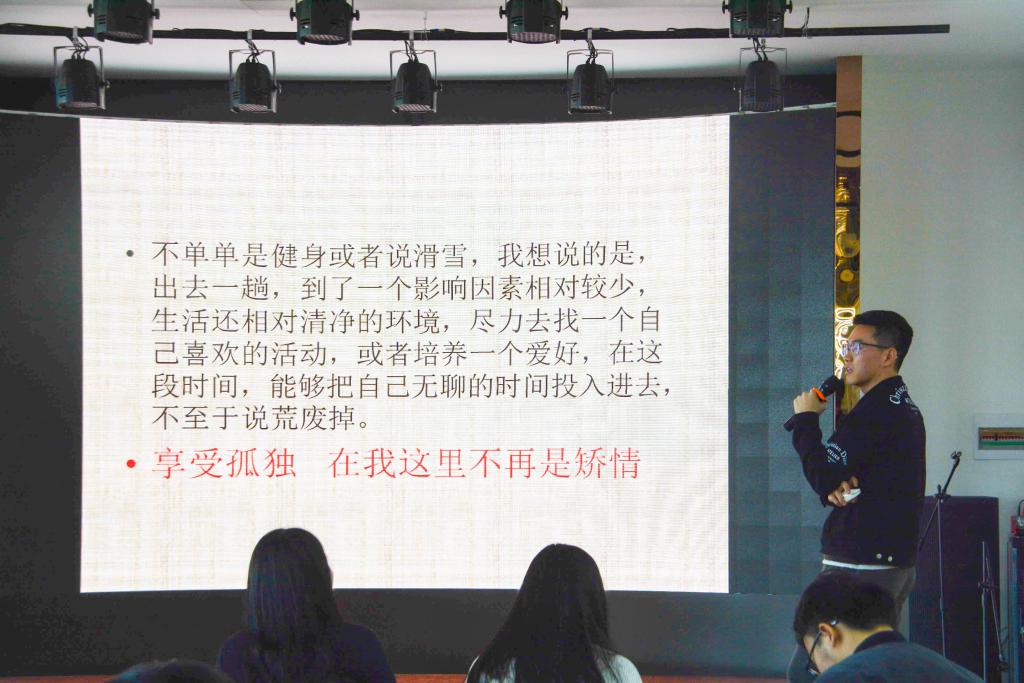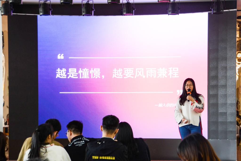 活动开始,在俄罗斯普列汉诺夫经济大学留学的宋玉丹、马芊芊先后上台发言。从在莫斯科的第一餐,到丰富的课余生活,再到课程的学习,宋玉丹与同学们分享了许多有趣的经历和遇到的挑战,让同学们对国外的生活、学习等方面有了更为深入的了解。马芊芊向同学们讲述了成为交换生的必要流程,并介绍了普列汉诺夫经济大学的专属特色。除此之外,她还将自己在国外的生活环境、与世界各地朋友相处的心得以及遇到的困难跟大家进行分享,使同学们进一步了解留学生活的丰富多彩。马芊芊用“越是憧憬,越要风雨兼程”来勉励同学们刻苦学习。