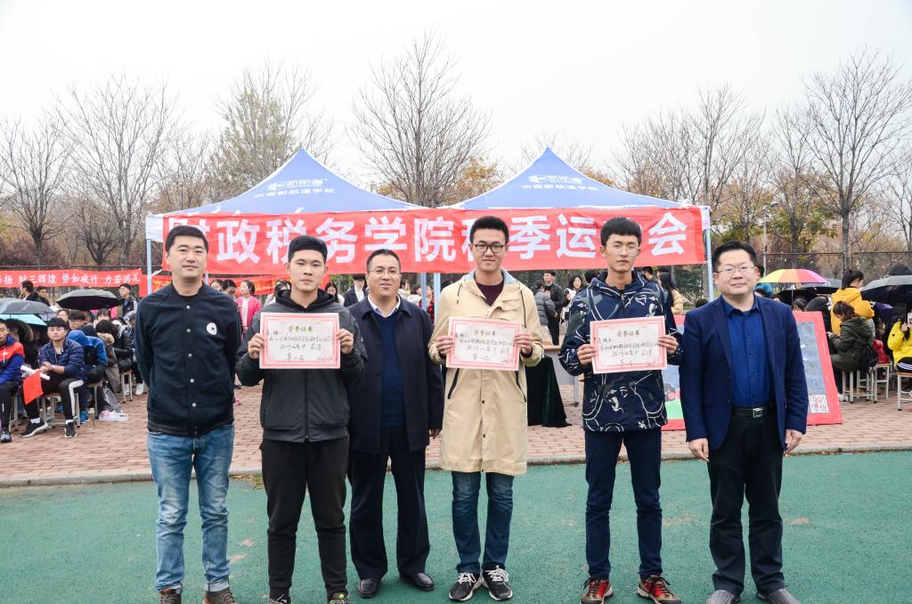 最后,张代宝副书记、王正一老师、李建永老师和郭滨滨老师分别为获奖班级颁奖。运动会总成绩第一名是2018级税收学三四班联队,第二名是2018级财政学一二班联队,第三名是2018级财税五班联队。2018级税收学三班、2018级税收学一班、2018级税收学五班分别获得拔河比赛冠、亚、季军。获得“精神文明建设班集体”一等奖的是2017级财政学一班和2018级财政学三班,获得二等奖的是2017级税收学四班和2018级税收学一班。