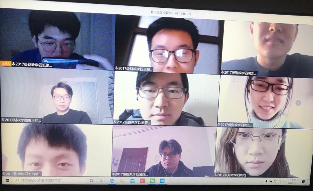2017级辅导员老师要求同学们居家期间坚持锻炼,增强体质,提高安全防护意识,积极配合学校疫情防控工作,不提前返校。重点强调了大三关键时期坚持学习的重要性,在防疫中注重“防”更不要忘了“学”。叮嘱同学们要利用这段时间,充实自己,做到“停课不停学”,根据自身情况制定学习计划,努力学习,才能实现弯道超车。“云班会”还进行了线上交流,各班在线交流分享了持续奋战在一线的医护人员先进事迹。针对居家防疫、杀菌消毒等话题进行了充分讨论,大家踊跃发言,对疫情防控提出自己的见解。财政学三班、四班同学还分享了个人的学习、健身经验以及烹饪、绘画等作品展示。此外在疫情期间主动参与志愿者工作的同学也都在班会中进行了工作和感悟的分享,树立了青年大学生良好的榜样。