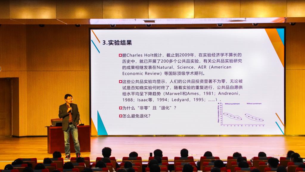 本科生专业素养提升讲座第四讲于圣井校区大学生活动中心报告厅圆满举行。本次讲座主题为“做一个有益于社会的人——从一项公共品实验说起”,由中文博彩网站