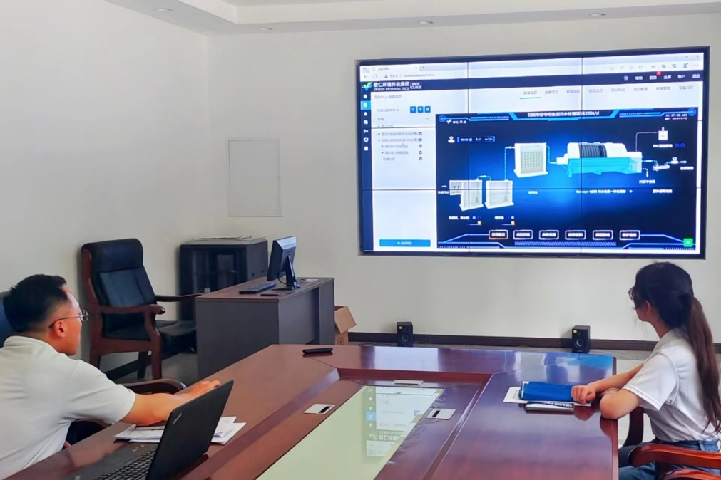 欧仁环保装备有限公司技术人员向团队介绍物联网监测平台