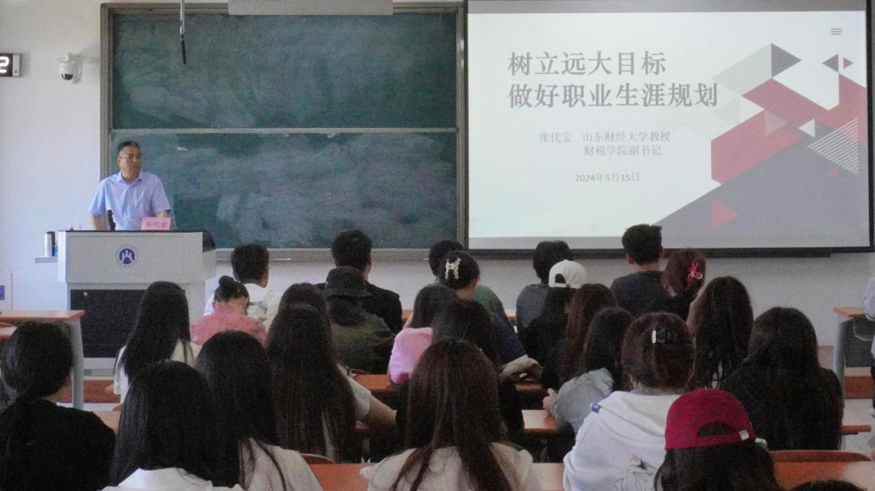 党委副书记张代宝于圣井校区7号楼为同学们带来一场题为“树立远大目标,做好职业生涯规划”的主题讲座。辅导员程佳和23级部分学生代表参加此次活动。