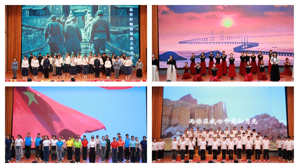 歌声传信念,舞姿绘山河。朗诵合唱《绽放》将岁月长河中积淀的精神力量,与新时代青年昂扬向上的蓬勃朝气紧密相连,共同谱写了精神传承的时代新声;歌舞《山河》以优美的舞姿铺展祖国壮丽画卷,深情表达了“青春护山河”的深厚情怀;合唱《强国一代有我在》唱响了青年“奋斗有我”的铮铮誓言与行动决心,将历史精神与时代脉搏凝结为青春奋进的强音。