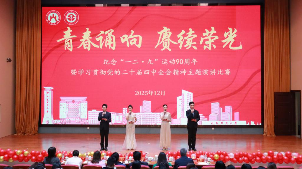 参赛选手深情回顾了“一二·九”运动的峥嵘岁月,以饱含情感的演讲唤醒历史记忆,致敬先辈奋斗精神;通过讲述英雄杨靖宇和沂蒙精神,生动诠释了“一二·九”精神在新时代的延续与焕新;结合工匠精神、九三阅兵、全运会风采等时代主题,展现了当代青年将爱国热忱转化为实干担当的生动实践;紧扣党的二十届四中全会精神,立足“十五五”发展蓝图,畅谈青春理想与时代使命,发出了新时代青年勇担重任、奋进新征程的坚定誓言。两组参赛团队以情景剧的形式呈现了革命先辈的铮铮铁骨与民族大义。