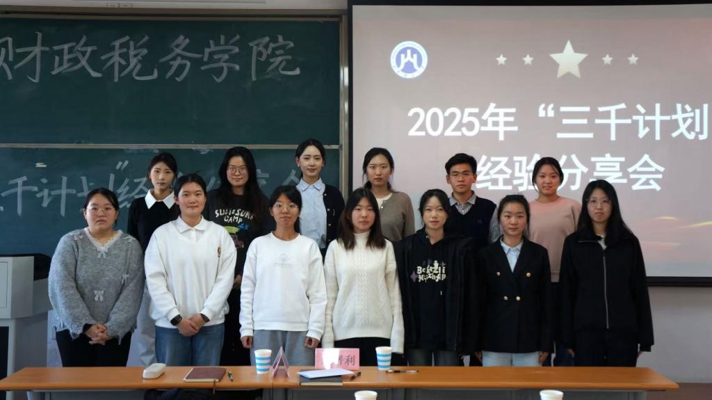 在章丘校区举办“三千计划”社会实践经验分享会。辅导员刘晋利、周迪语,23级学生李籽娴、24级学生赵肖屹受邀出席,25级学生代表参与。