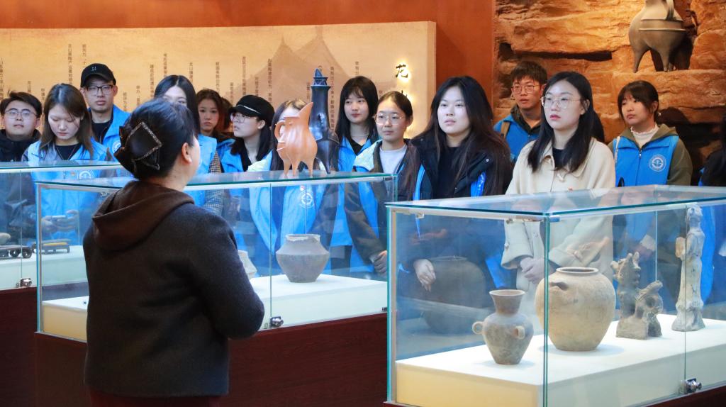 活动初始,非遗传承人胡新苗引领同学们走进中国龙山黑陶历史研发馆。在馆内,胡新苗详细讲解了龙山黑陶独特的制作工艺。同学们漫步馆中,既能欣赏到一件件精美绝伦的黑陶作品,又能近距离观摩黑陶制作的全过程,收获满满。据悉,馆内从事黑陶制作的工作人员都有着二十多年的丰富经验,他们对技艺的执着坚守与专注,让同学们深切领悟到精益求精的工匠精神。